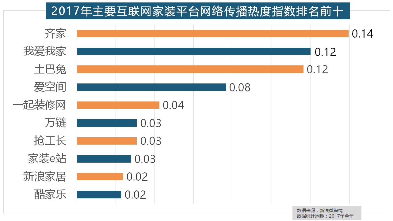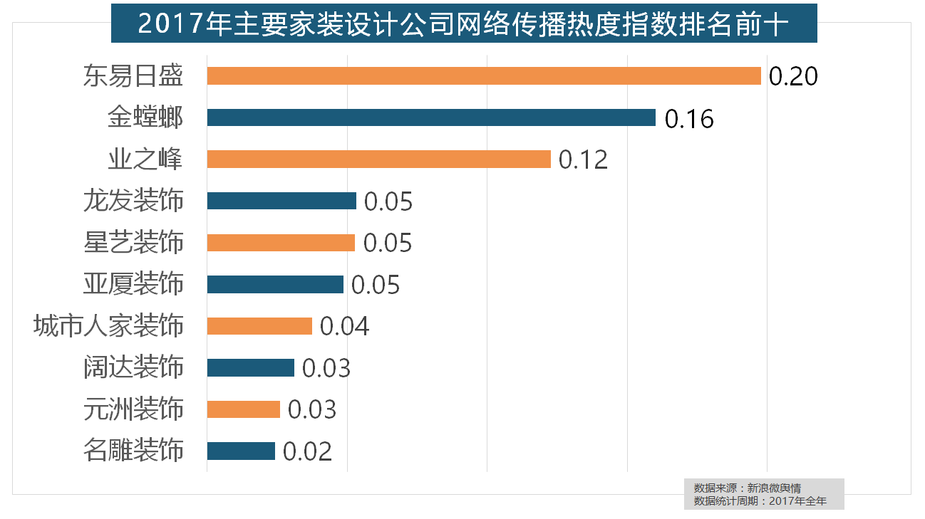2017年,据新浪微舆情大数据阐发显示,据新浪微舆情大数据阐发显示,“拆修”的收集热度指数为29.89,名雕粉饰、亚厦粉饰、城市人家粉饰、阔达粉饰、元洲粉饰也榜上出名。